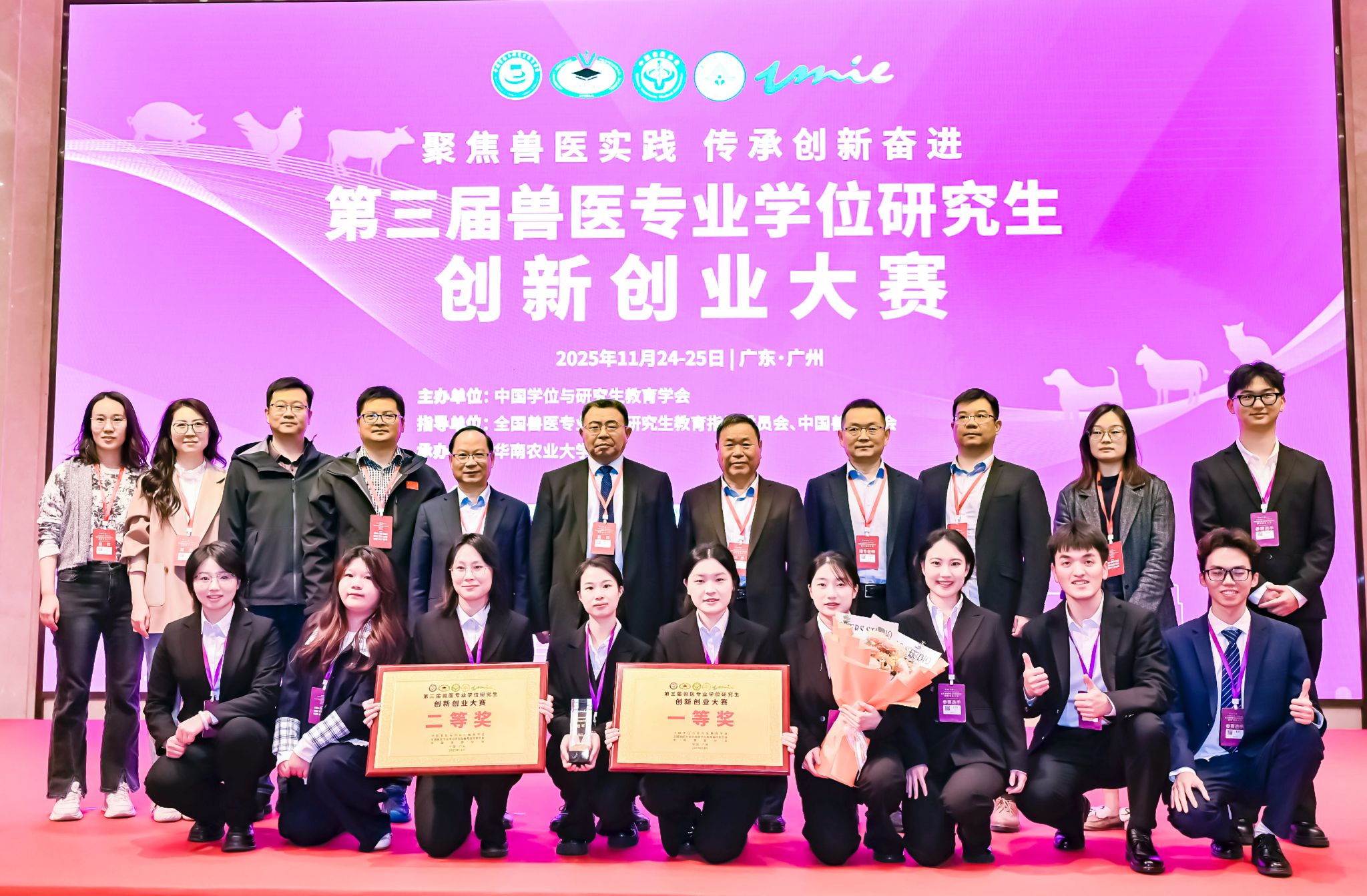 11月24日-25日,由中国学位与研究生教育学会主办,全国兽医专业学位研究生教育指导委员会、中国兽医协会提供学术指导的第三届兽医专业学位研究生创新创业大赛在广州成功举办。由我校必赢线路检测3003研究生组建的2支团队在比赛中取得优异成绩,分别获得一等奖和二等奖各一项。其中,创新团队“禽疫清风队”(团队成员:曾亦然 熊宁娜 乔艺璇 杨镒萌 戴子建 ;指导教师:平继辉教授、林建教授)凭借《智御疫病——禽传染性支气管炎精准...