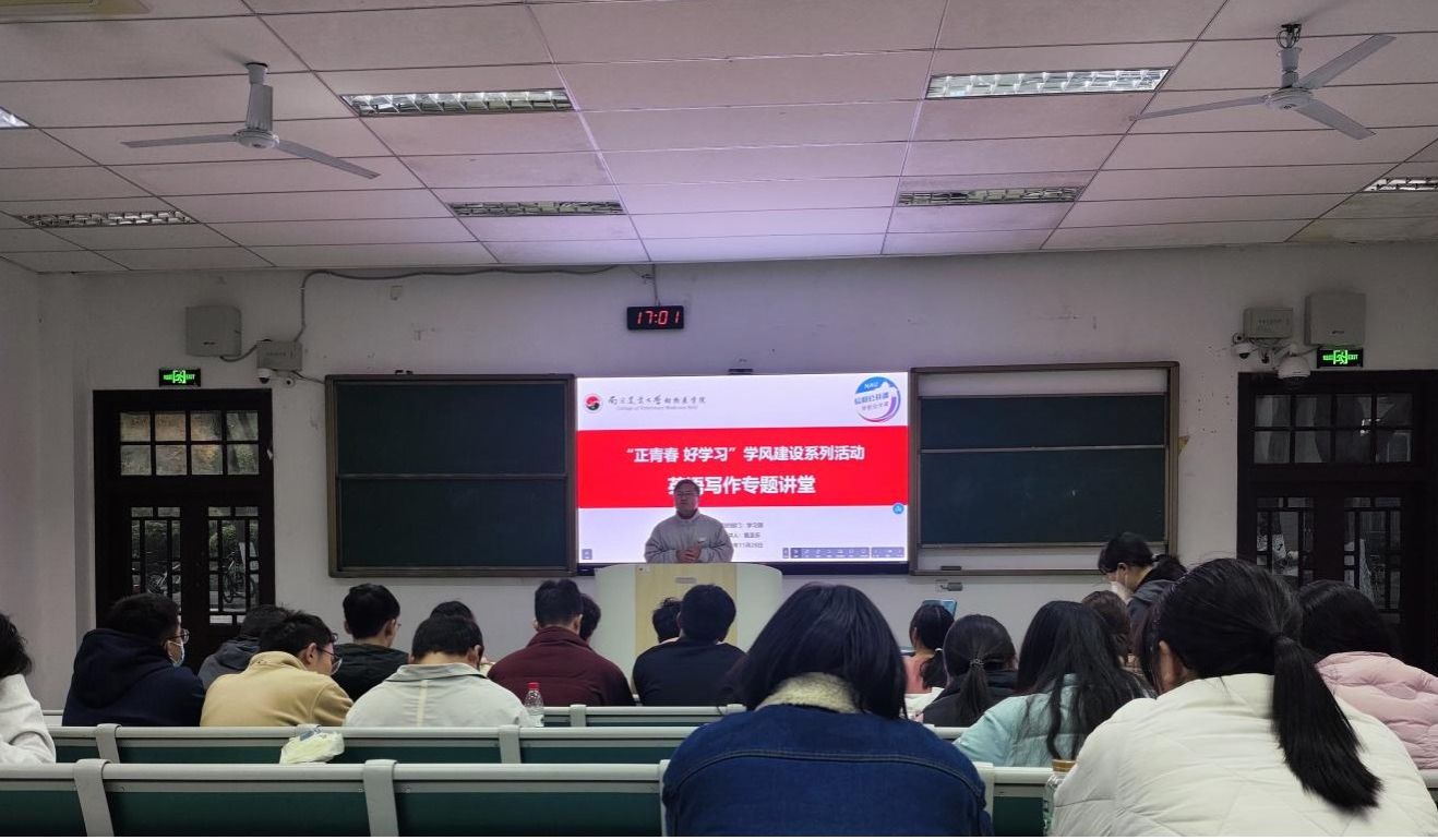 11月28日,组织举办“英语写作专题讲座”,邀请外国语学院甄亚乐向同学们传授四级考试的答题思路及相关技巧。期间,同学们积极提问,甄亚乐根据自身经验一一作答,现场氛围活跃。