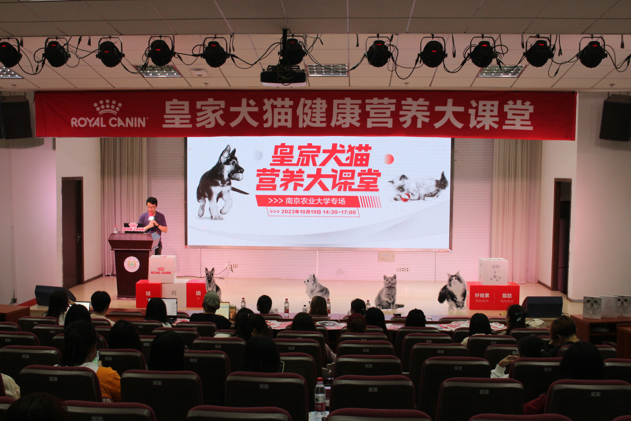 10月19日下午14:30,2023年皇家犬猫营养大课堂南农行在教四楼报告厅举行。到场嘉宾有皇家宠物食品中国区代表、必赢线路检测3003临床兽医系陈凯文副教授和辅导员李欣欣。皇家宠物食品中国区科技交流部王芳与皇家宠物食品中国区电商渠道高级经理徐斯旸共同主讲。皇家宠物食品中国区代表与必赢线路检测3003、动物科技学院等学生六十余人到场参与。