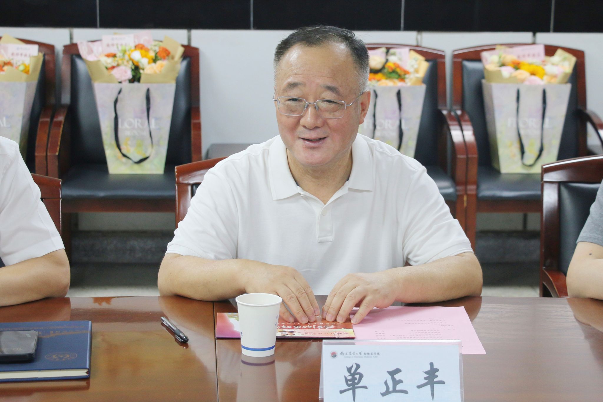 座谈期间,单正丰向与会教师代表送上鲜花,表达了对教师们辛勤工作的诚挚敬意与感谢,并向全院教职员工致以节日的祝福。