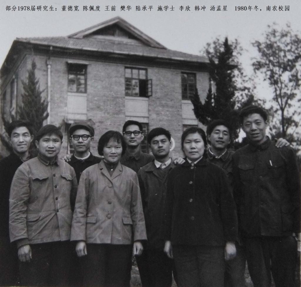因种种原因,1978年9月扬州录取的这批首届研究生,迟至当年1225日才报到。19792月,农林部党组和江苏省委批准南京农学院在南京复校。1978年在扬州共招研究生19人,何去何从,去宁或留扬?确定原则,研究生随导师定位。方定一老师录取了报考兽医微生物专业的崔治中、储长贵,朱堃熹老师录取许益民为他的研究生,这3人均与导师留在扬州。在南农导师名下的研究生16人,分别为:翟虎渠(导师马育华),李欣、高山林(导师朱立宏),陈佩度(导师吴兆苏),汤孟星(导师李扬汉),樊华、贾新成(导师樊庆笙),周抑强(导师史瑞和),董德宽、尹光灿、施学士(导师韩正康),韩冲、王泽霖、陈溥言、陆承平(导师蔡宝祥、杜念兴),王前(导师谢成侠)。