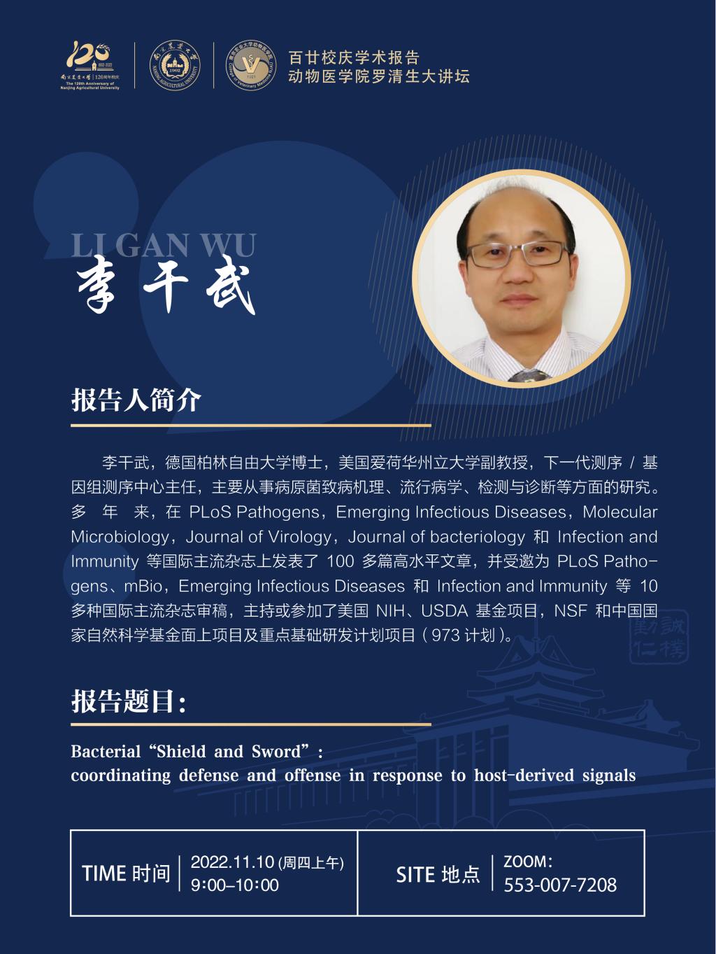 【百廿校庆学术报告】必赢线路检测3003罗清生大讲坛-Bacterial“Shield and Sword”:coordinating defense and offense in response to host-derived signals
