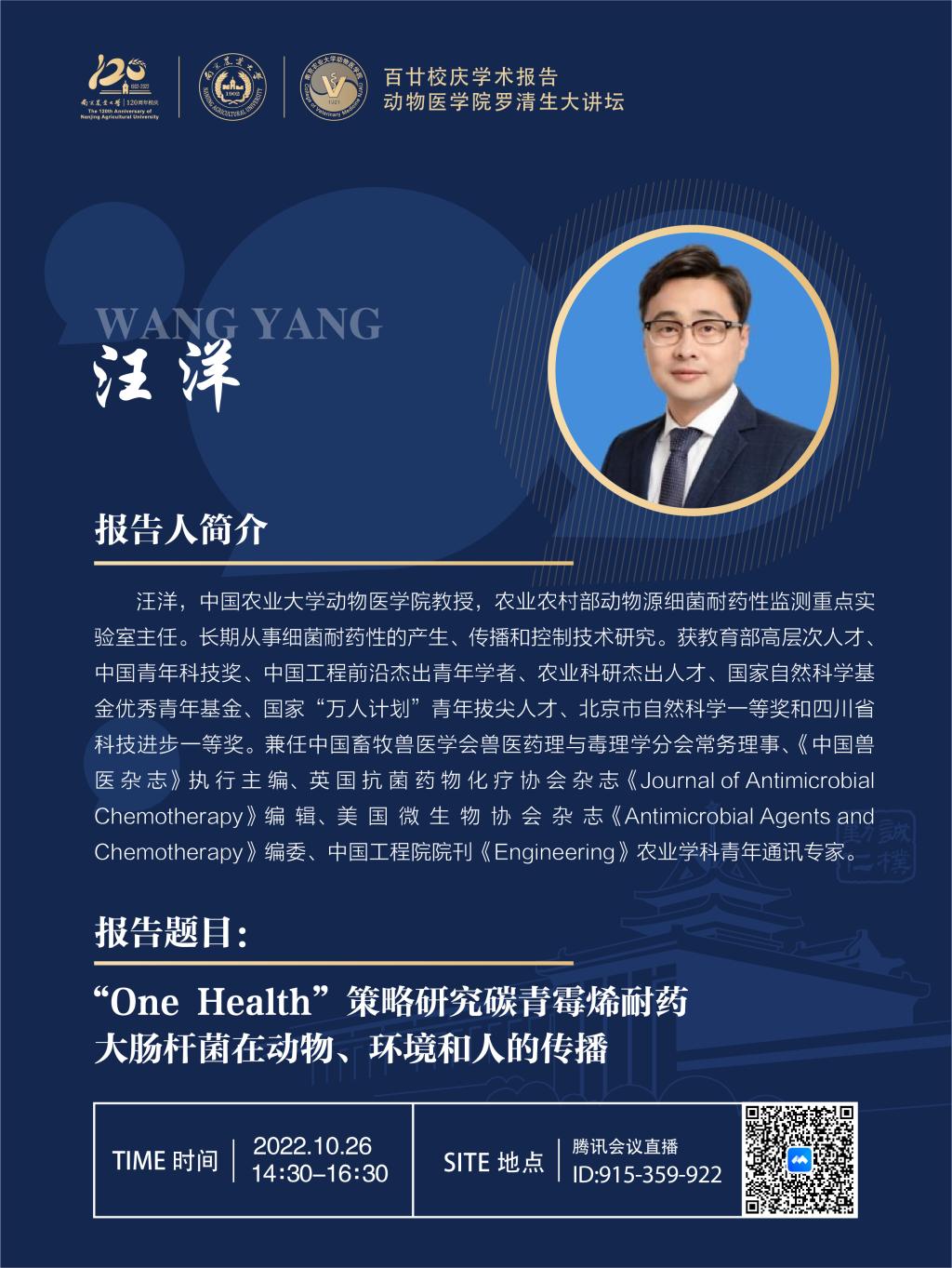 【百廿校庆学术报告】必赢线路检测3003罗清生大讲坛-“One Health”策略研究碳青霉烯耐药大肠杆菌在动物、环境和人的传播