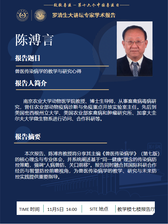【罗清生大讲坛专家报告】兽医传染病学的教学与研究心得