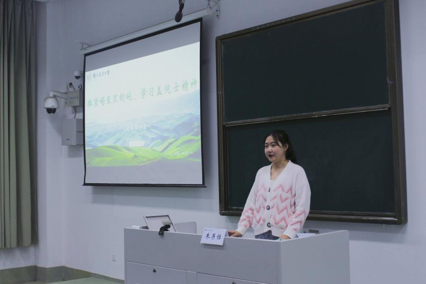 最后,朱子怡带领同学们深入了解了中国工程院院士、大豆遗传育种学家盖钧镒院士的精神。“只要每天早上中国人自己的碗里装的是自己的豆腐,中国人的杯子里盛的是自己的豆浆,我的坚持就有意义。”盖院士用行动告诉同学们,身为农科生,我们更应该立足当下,为国为民,做有雄心、有志向的青年人,为国家做贡献,为人民谋福利,为科学事业做贡献。