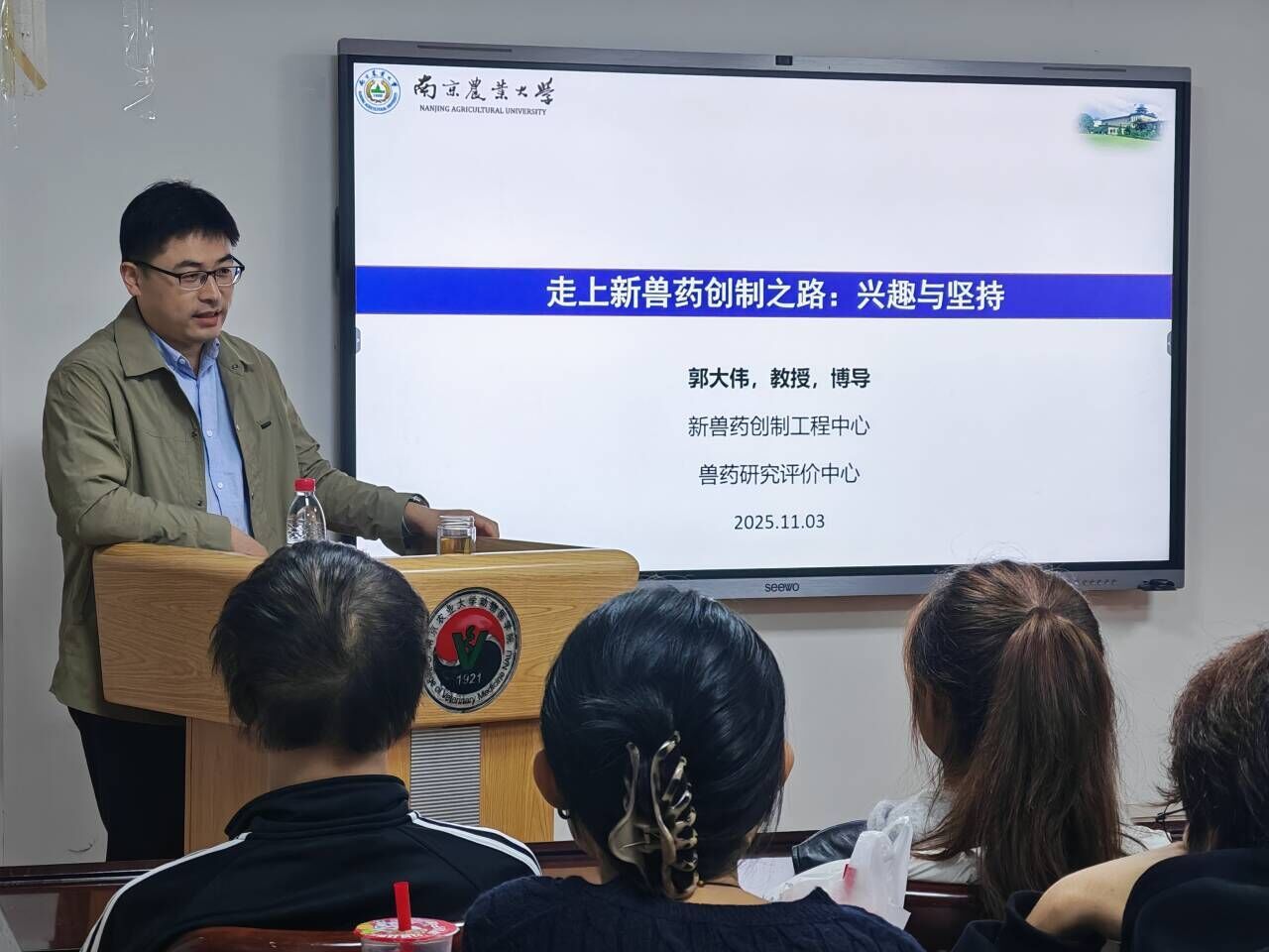 11月3日晚,郭大伟教授以“走上新兽药研发之路:兴趣与坚持”为主题在逸夫楼1000-7开展研讨课,为新生揭开兽药研发领域的神秘面纱。