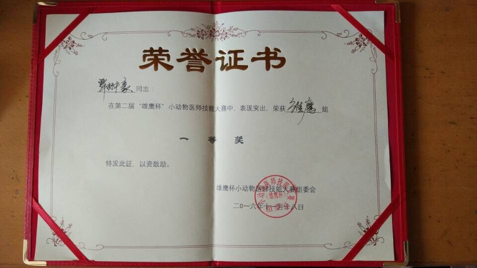 覃翀豪获小动物医师大赛一等奖