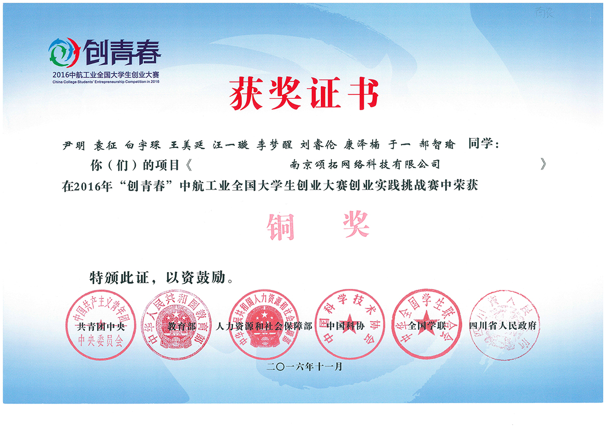 袁征获全国创业大赛铜奖