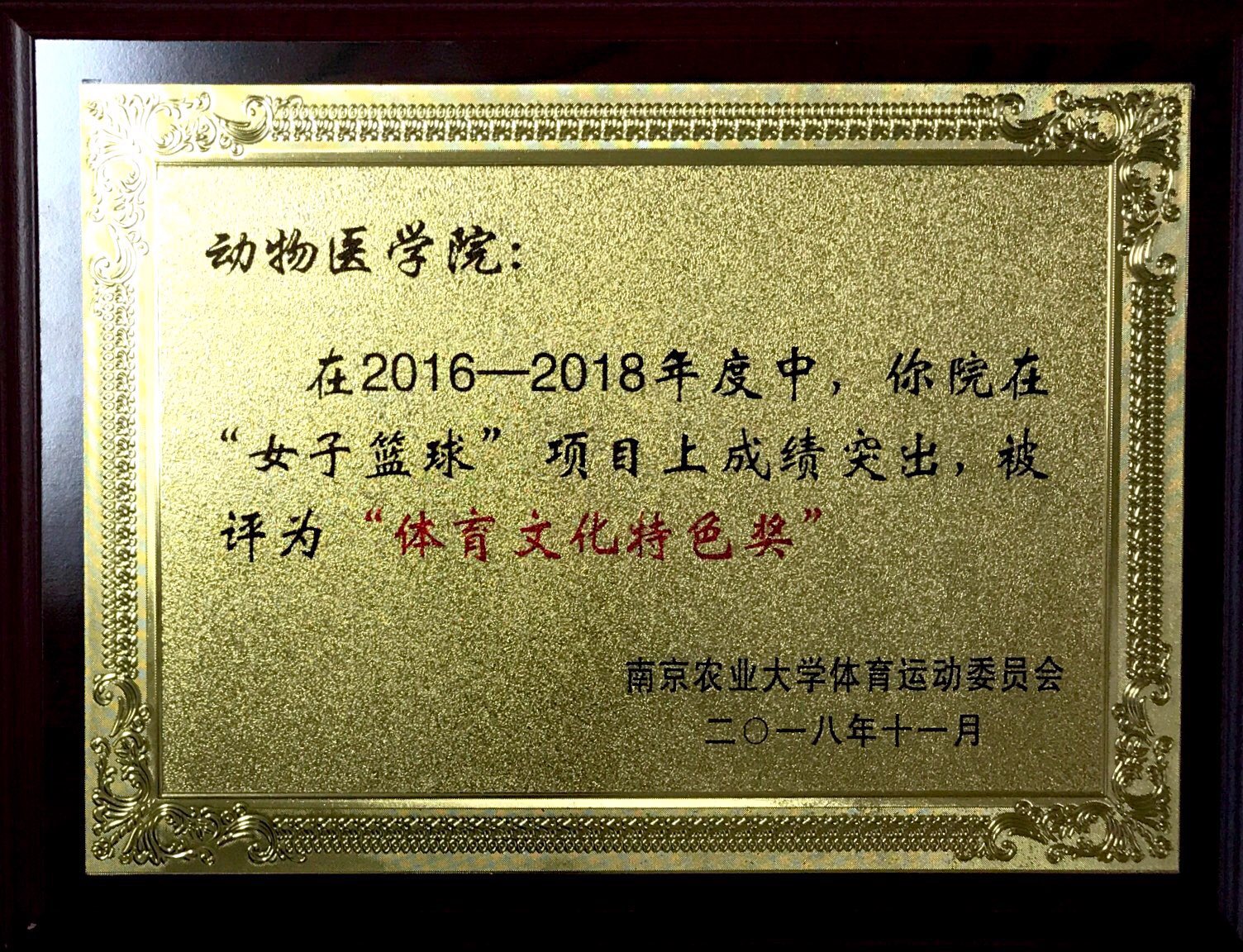 2016-2018年女子篮球体育文化特色奖