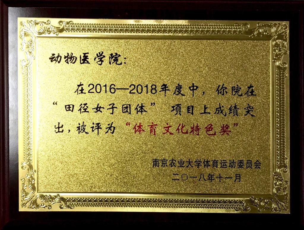 2016-2018年度田径女子团体项目体育文化特色奖